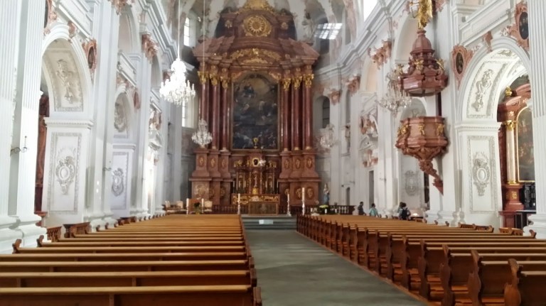A lakeside city park near our hotel also has a tourbus parking lot. It’s full. The Altstadt doesn’t feel overrun, but it is evident that the tour groups are out, with a line outside Bucherer, waiting for their afternoon opening. http://bucherer.com/There were three tourbuses parked out front at 3:30pm. Many of the tour groups seem to be Asian. They travel in packs and descend on a location, though fewer selfie sticks than before. They pose before a monument so one of their group can take a ‘I was here’ photo, before heading off to the next attraction. This includes the couple taking a selfie inside the Jesuitenkirchen, in front of the altar.