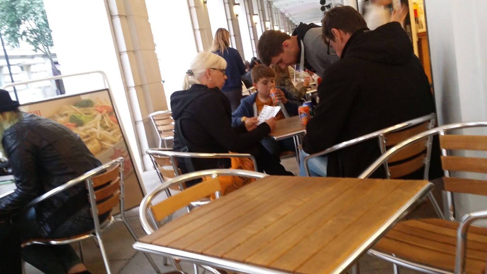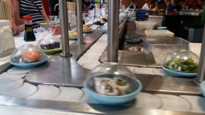 Predictably, it’s too early to check in, so we’ll leave our bags and go have lunch at Yo! Sushi, where it is “Blue Monday”. Some items are reduced and any blue plate is 2.70£ (~$4.18).