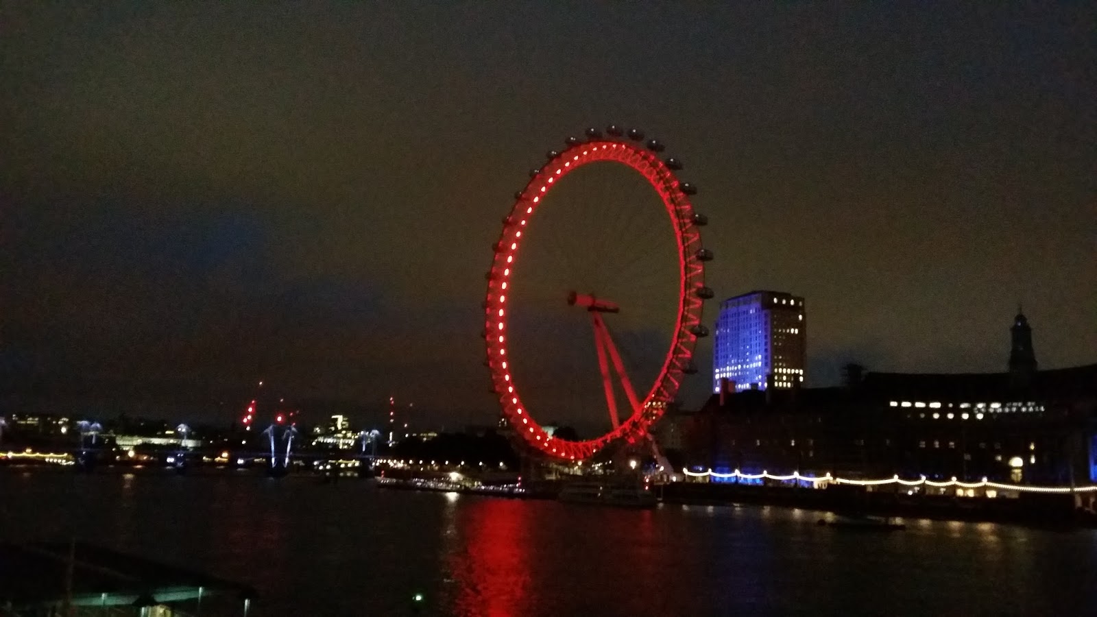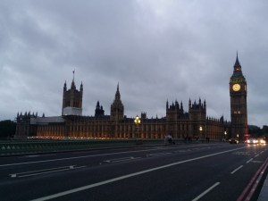 The London Eye is still running, though with the clouds and approaching darkness, visibility must be limited. The day we went up a number of years ago was beautifully clear and we’ll worth the experience. The weather is still trying to decide whether or not to rain, and finally decided to let us walk about a bit without getting wet.