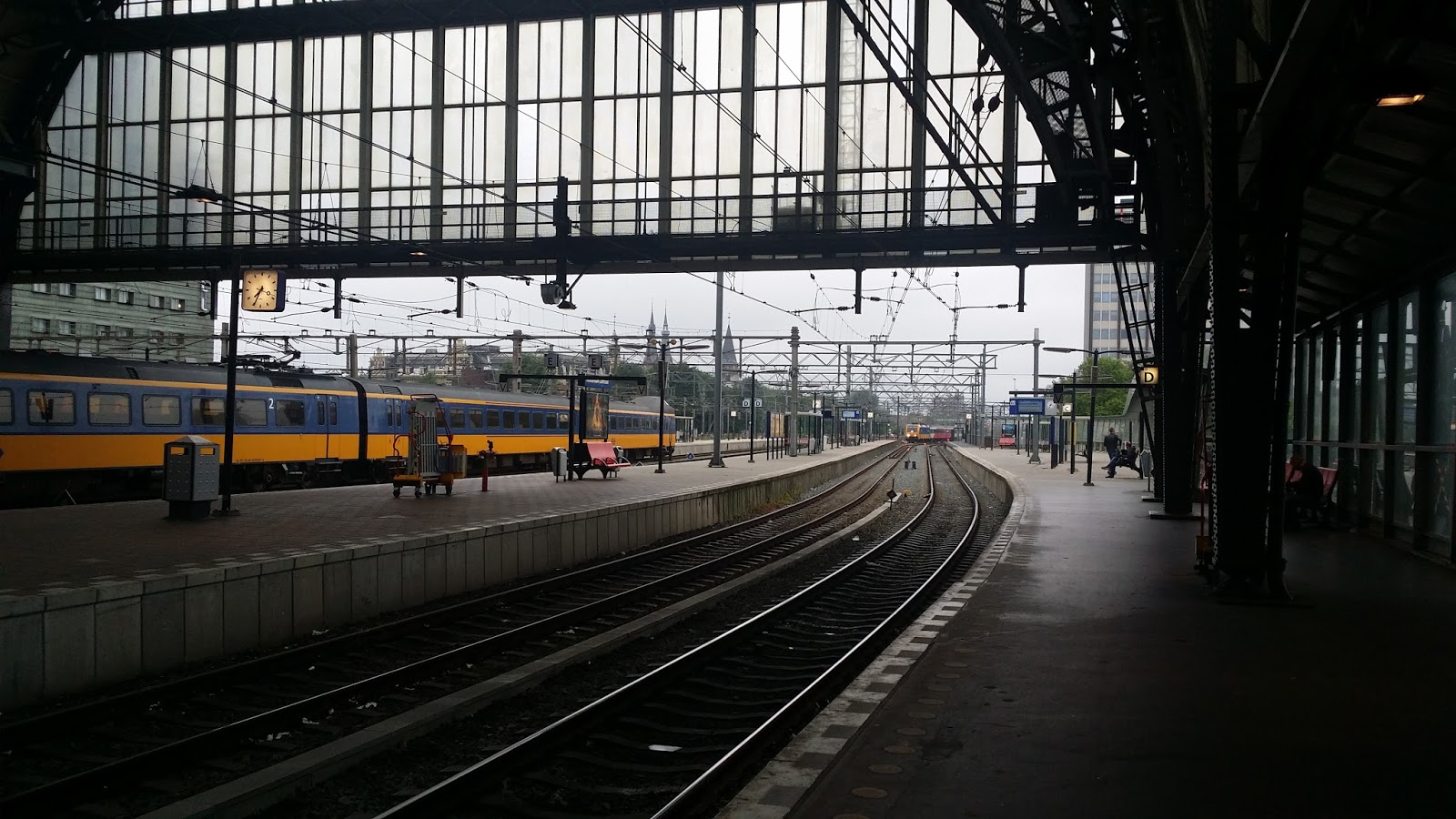 I’ve enjoyed Amsterdam. Just about the time I got comfortable knowing where things were and how to get there, it’s time to leave. There’s a Thalys from Centraal Station about every hour before noon. From our hotel, we hopped onto the tram to get to Centraal Station, which is really quiet at 7 am. We will take the Thalys from Amsterdam to Bruxelles, then have about 45 minutes between trains before taking the Eurostar under the Channel to London’s St. Pancras station, from which all Eurostar trains arrive and depart. Your train ticket tells you which car and seat number you have, and the signage on the track tells you which section to be near for your car (so you don’t end up walking the length of the train when it arrives).