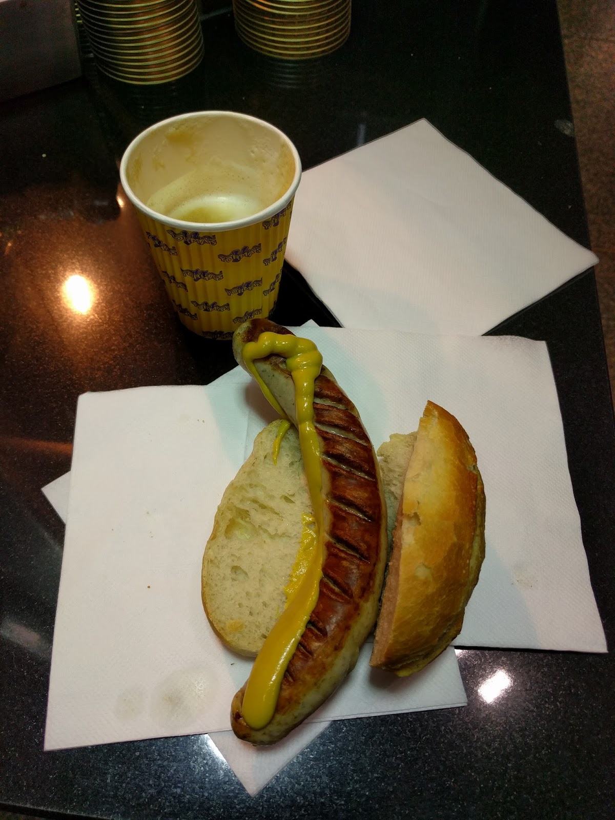 Bratwurst MIT Semmel (roll) und Senf (mustard). Oh, yeah. We also had another gourmandise. It was warm.