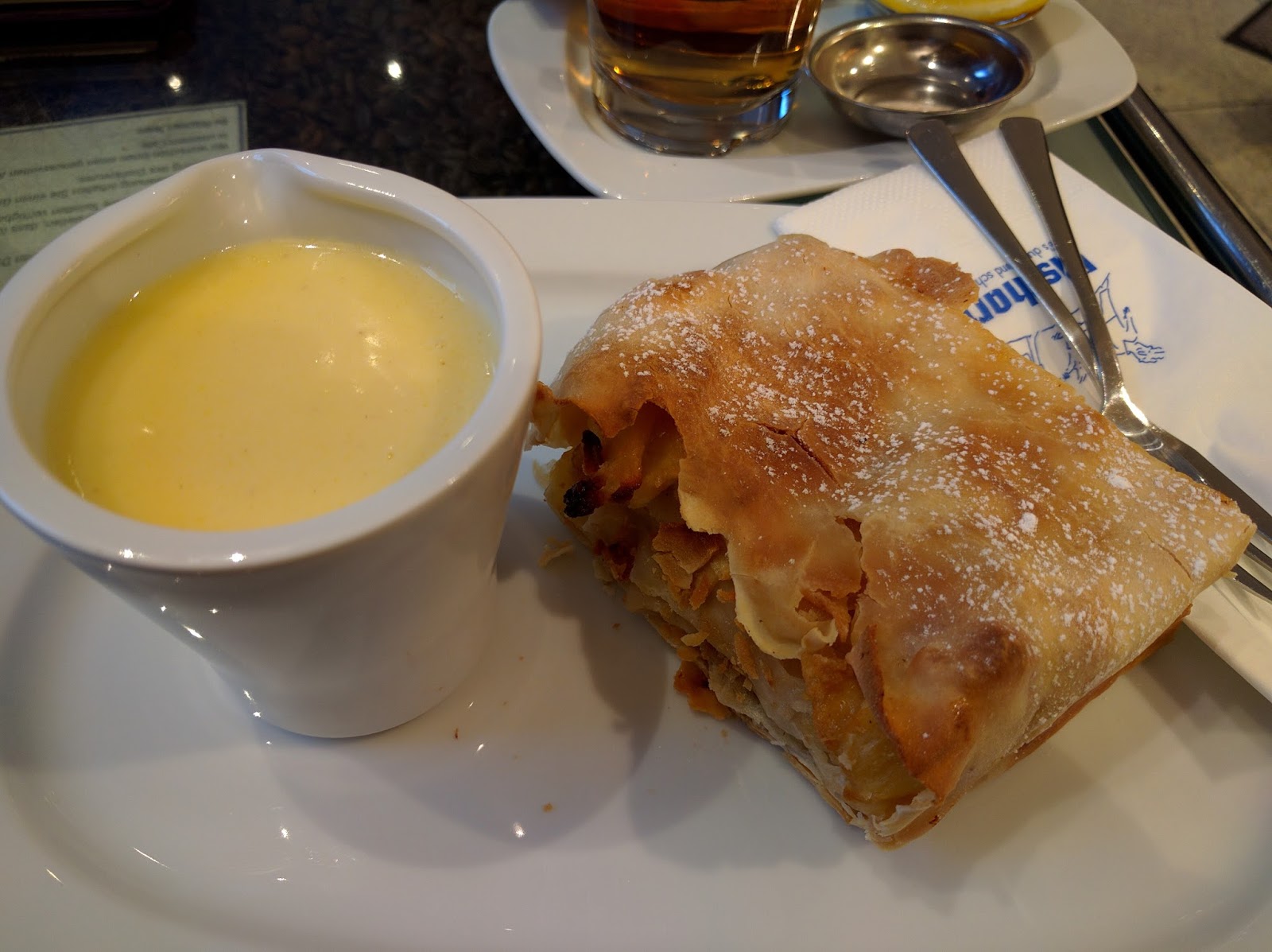 We added ein paar Weisswurst (delicate white sausages) with süß senf (sweet mustard) and some goulash soup. Later, we stopped in for some Apfelstrudel.