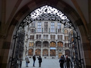 We walked into the interior courtyard of the Rathaus, somewhere I can’t believe we’ve not visited before. Definitely a different perspective on the Rathaus. Lovely balconies,a winding staircase and gargoyles to scare off the evil spirits.