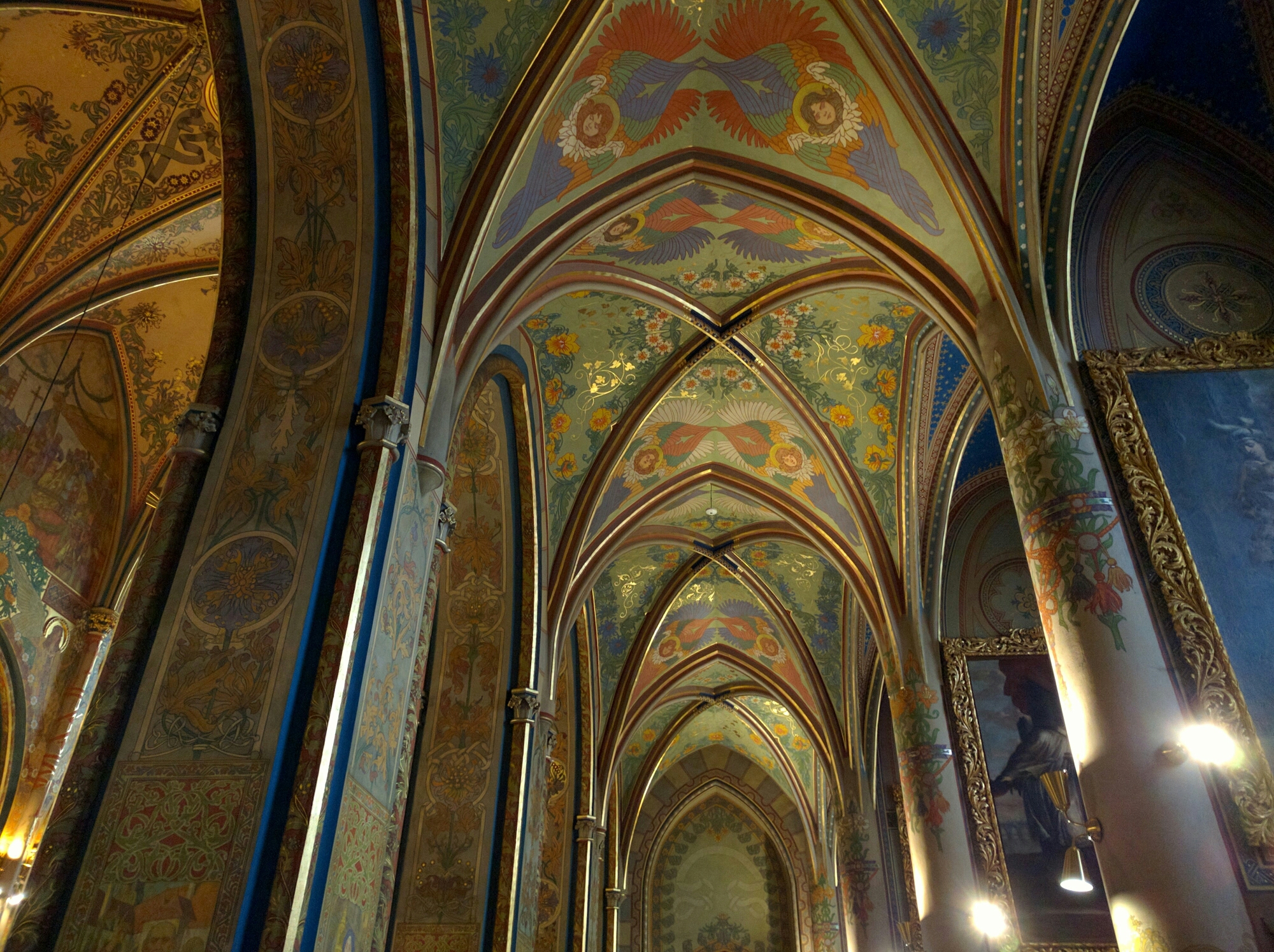 It’s not a lot warmer inside the Basilica than it is outside, but it is really lovely. Every surface on the walls, ceiling and pillars are painted or decorated in some way. You can see it is not particularly large, but still in use.