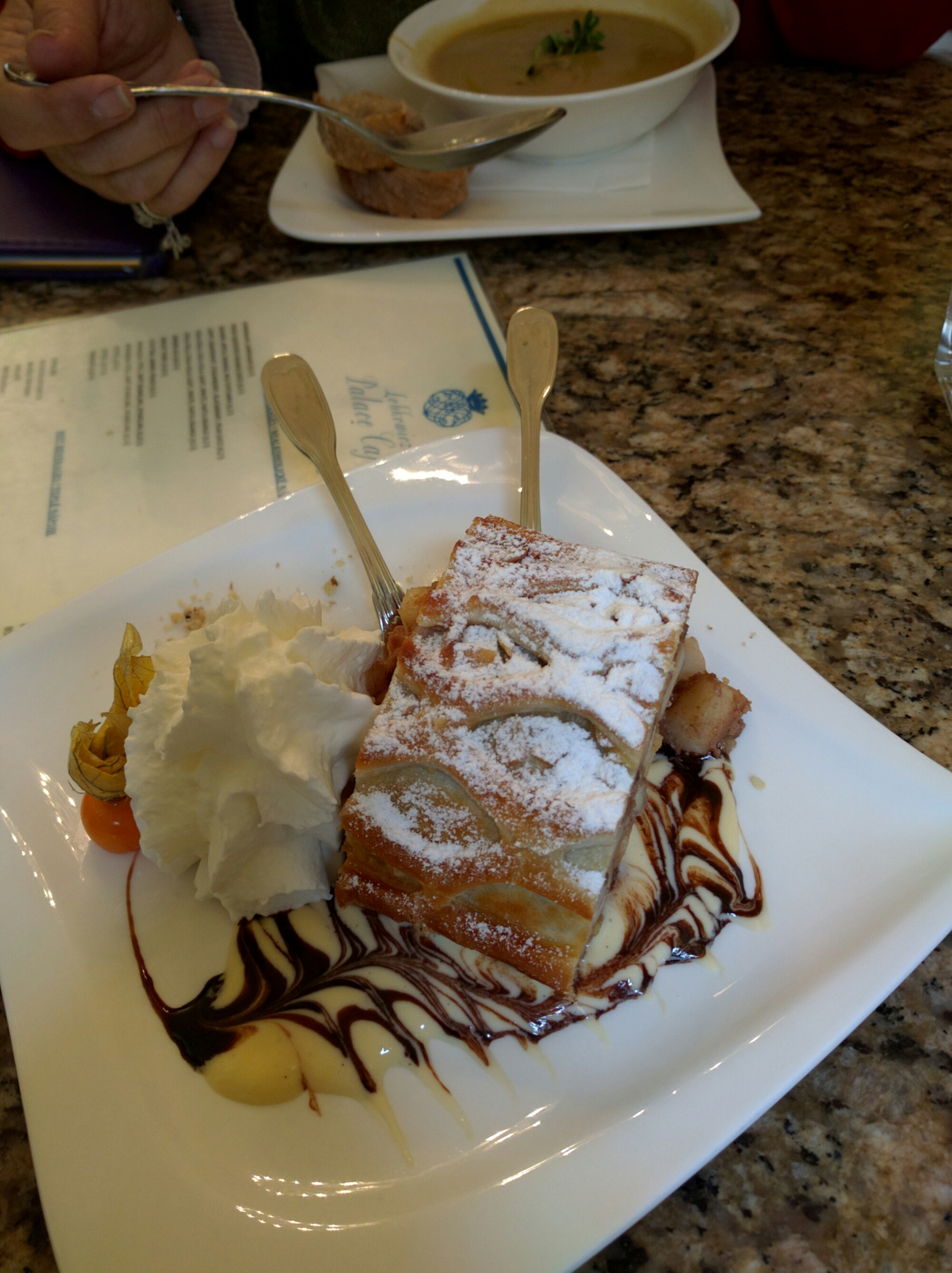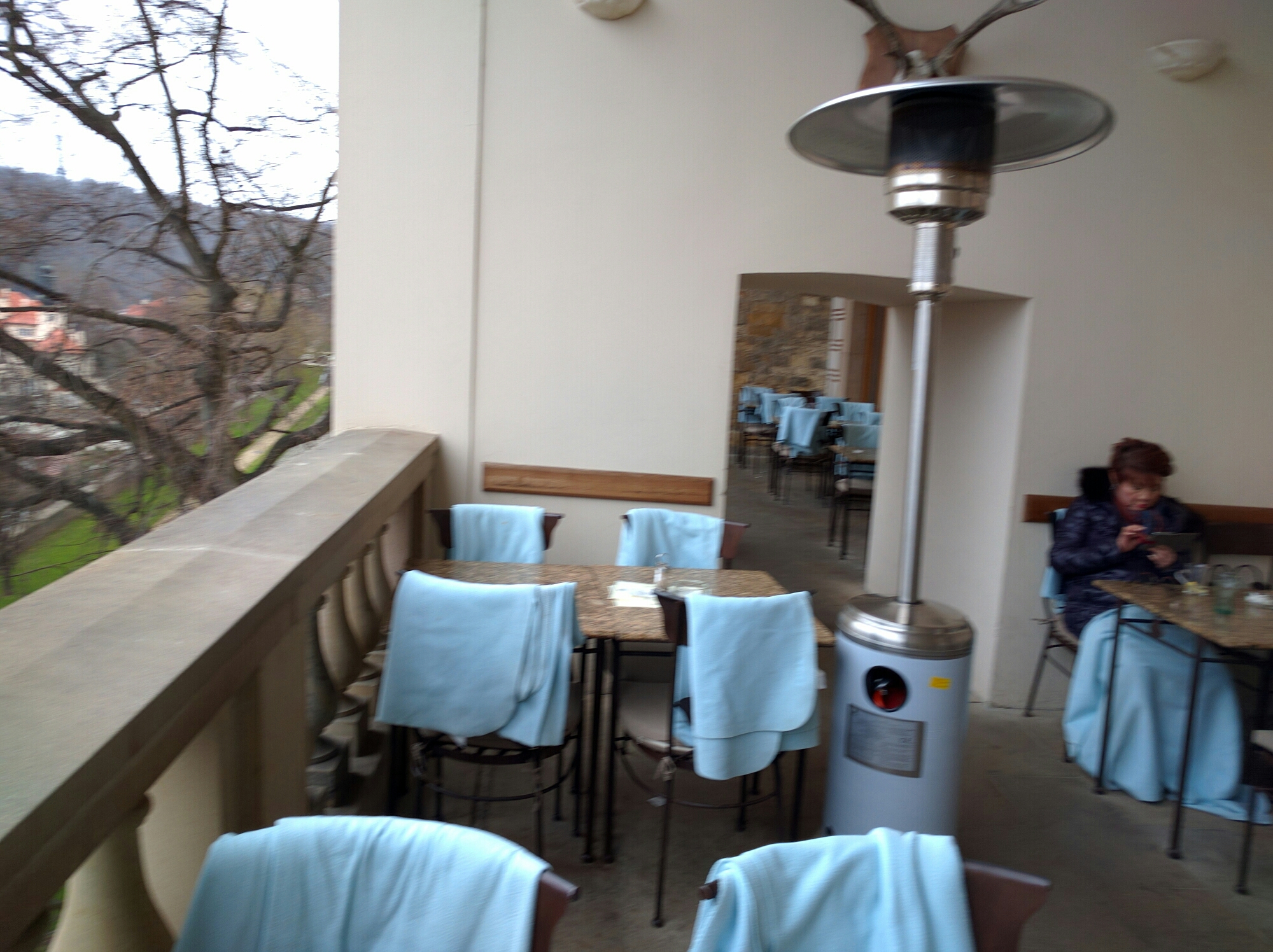 We were in need of something hot to drink and found the Lobkowicz Palace cafe, which has a patio (we’ll sit inside thanks, except for taking some photos), but we managed to find something good to eat and some hot tea.