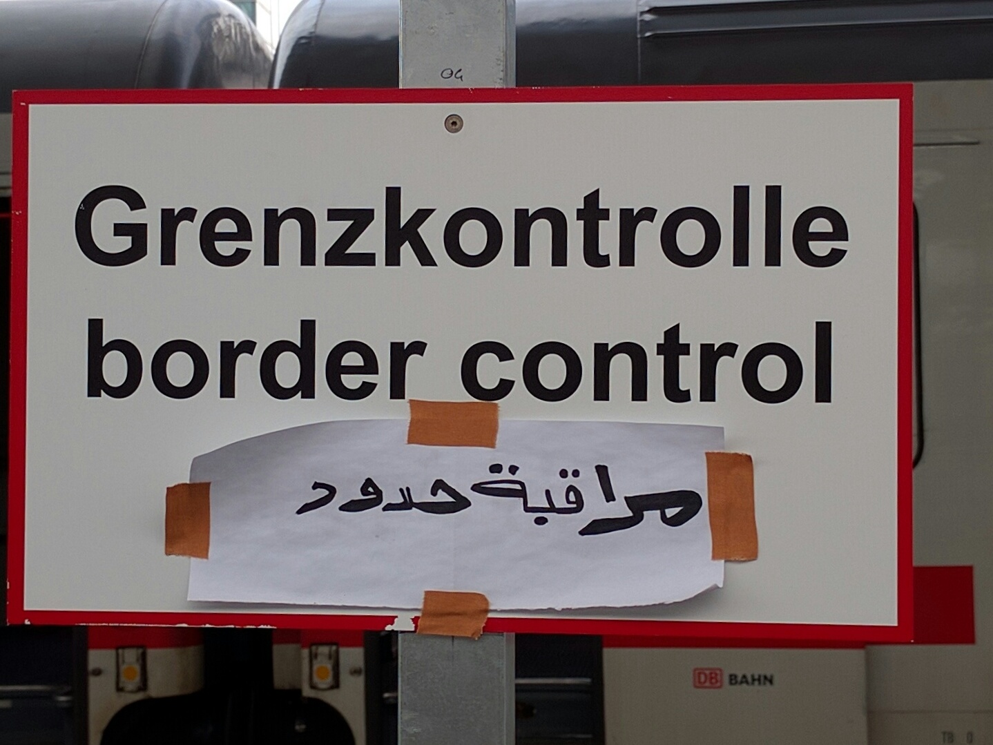 On the platform, notice the first sign I’ve seen of the immigration crisis in Europe, with a border patrol sign (Grenzekontrolle), with a subtext of what language (Arabic, Kevantine Arabic, Kurmanji)? What a human tragedy.