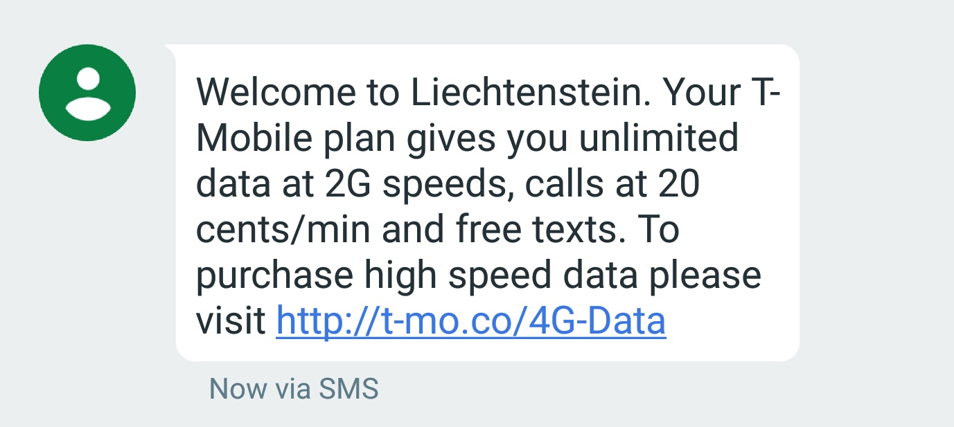 A few minutes later. I’m notified I am now in Switzerland and am privileged to have 2G here, too. It’s free, but it’s not worth much.