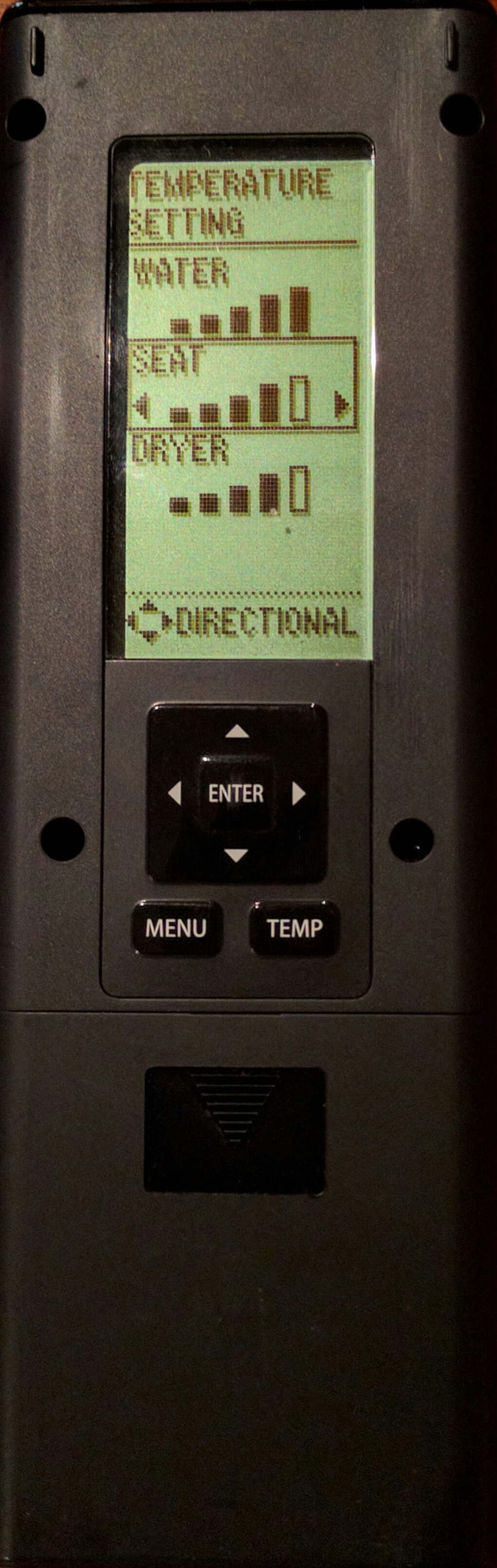 - These items, including temperature, are adjustable in the remote.