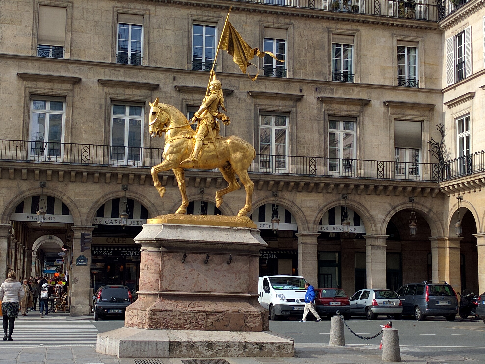 We will cut over to walk past the statue of Jeanne d’Arc , near one corner of the Louvre.