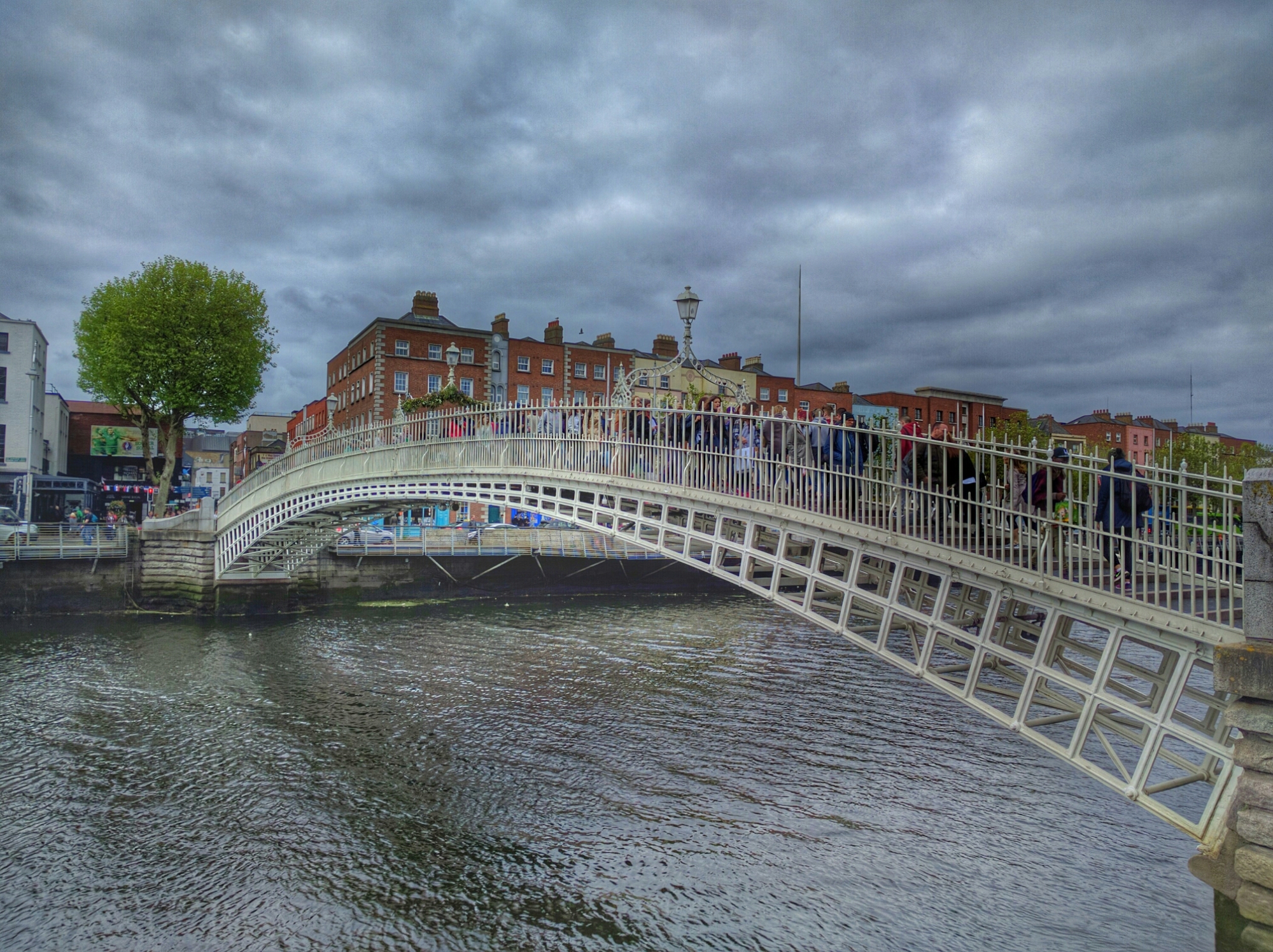 We’d been through the State meeting rooms in the newer part of the complex during their Viking week, but hadn’t visited the gardens. After Dublin Castle , we continued on towards our original objective of the (narrow) Ha’penny pedestrian Bridge over the Liffey River. It’s called Ha’penny, because when it was a toll bridge, it cost a Ha’penny (half penny) to cross. It’s free now, the toll period of 100 years having expired.