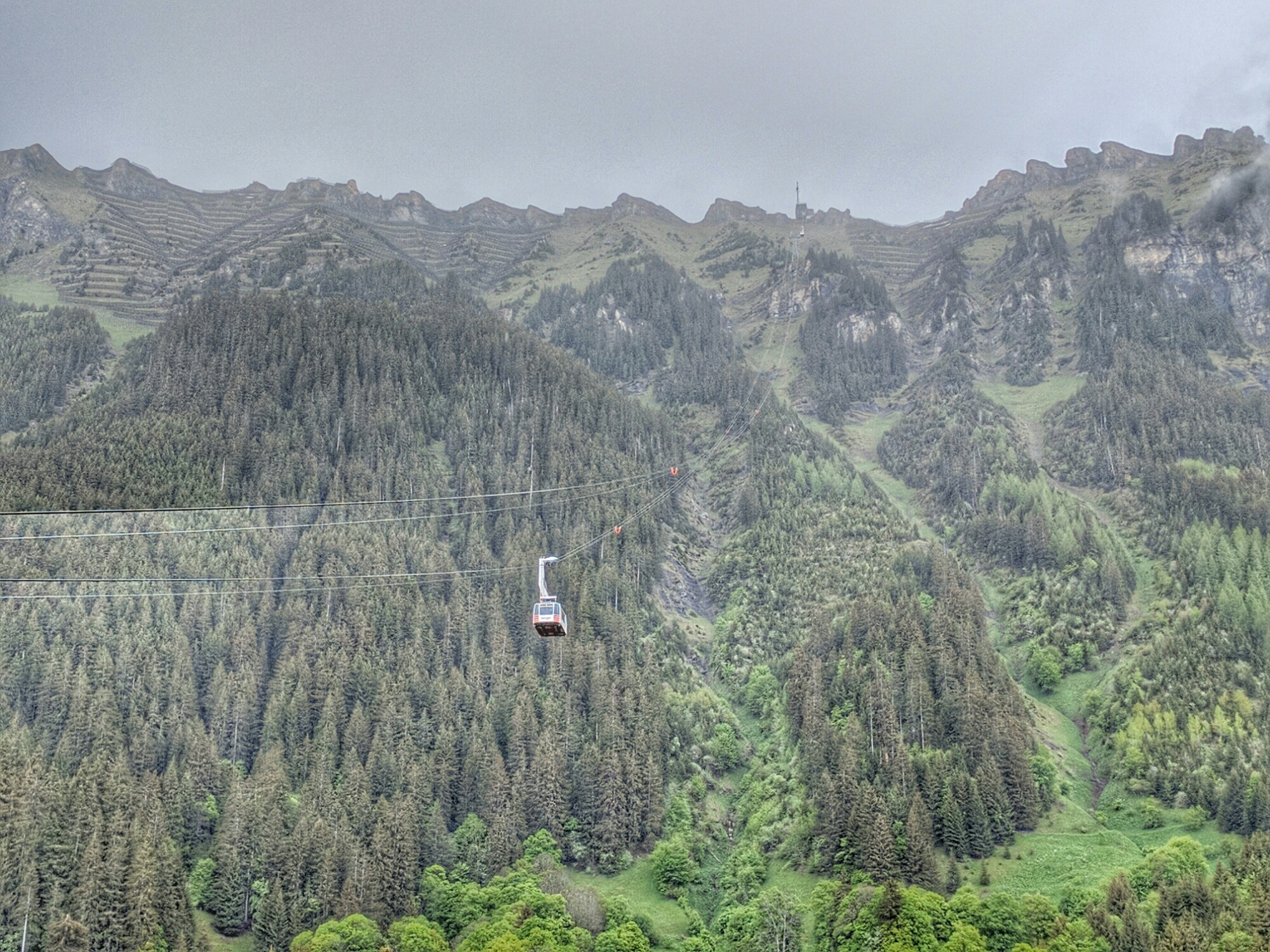 From the Mannlichen you can take gondolas down to Grindelwald. Those are snow fences high up on the mountain you see in the picture, to lessen the chance of avalanche. See some photos in the 2006 Flickr set of our trip up to the Mannlichen.