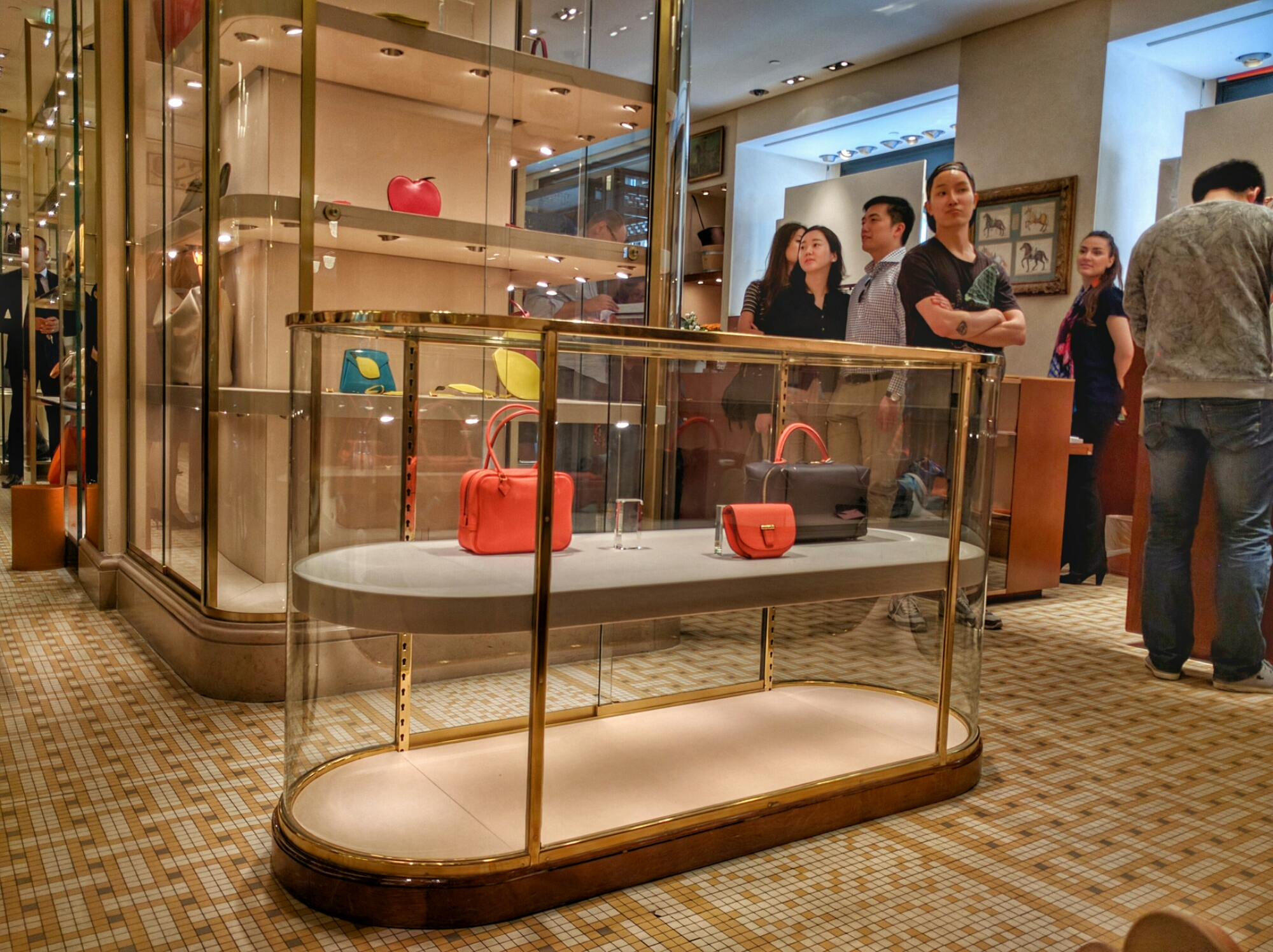 Meanwhile, people watching is a worthwhile pastime. The clientele is broad. A lot of Asian, some very young (where exactly do you get the money for a purse that costs four-five figures, or more?) and a lot of middle aged folks; mostly women, some men on their own and not watching part of their fortunes disappear with their spouse’s excitement over their newest acquisition.