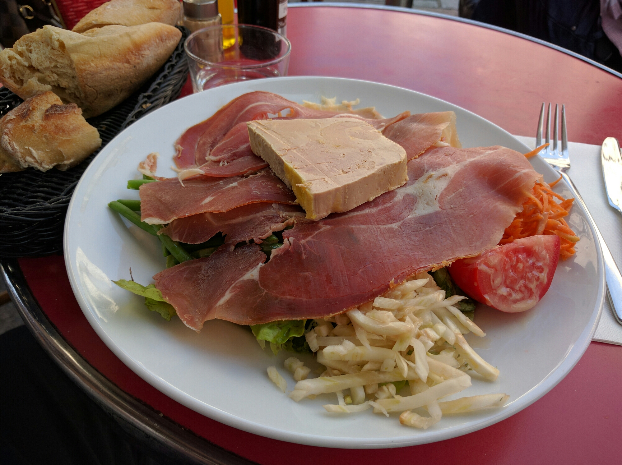 Sit outside at the Café du Marche, watch people, enjoy a great salad. The pâtés de foie gras is delicious. Across the way is a great boulanger (bakery) and down the street, a café that cooks up crepes with bananas and Nutella.