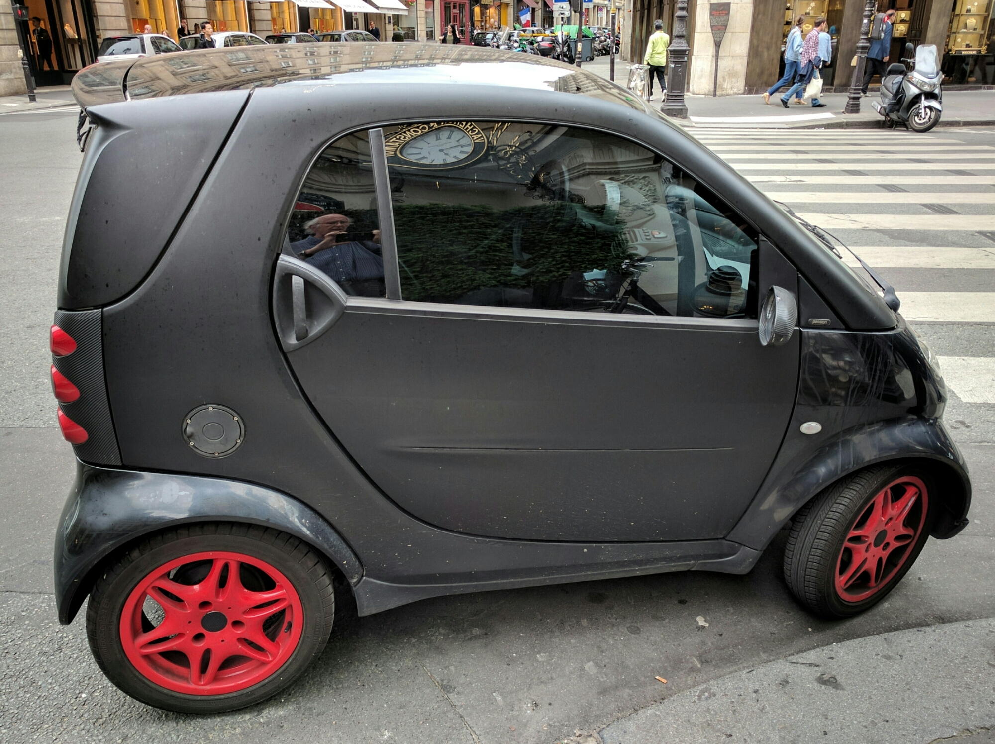 Traffic in central Paris can be crazy. While the main streets are broad, many of the side streets are only two lanes (but one way). There’s always construction or renovation going on and often, it blocks one of those lanes. So traffic “moves” at a crawl. Parking is expensive. They ought to charge by the meter (length), in which case these two would come out well