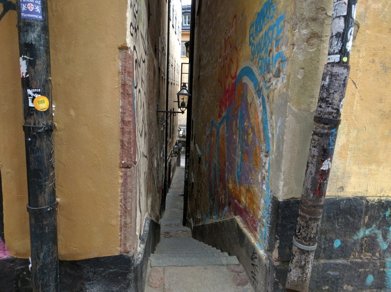 It took a little exploring , but we found what is reputed to be the smallest street in Stockholm