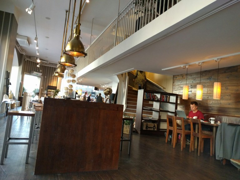 It’s always a bit of a pain to change hotels, but we do this periodically when we’re traveling on points, as we often do. Today was one of those days. Fortunately, the second hotel wasn’t very far away and we got a top floor corner room. Nice view, too.