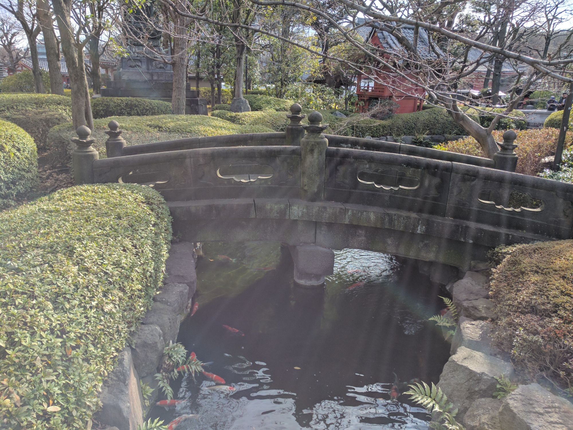 Surrounding the temple structures are extremely well tended gardens with statues, small streams with koi ponds.