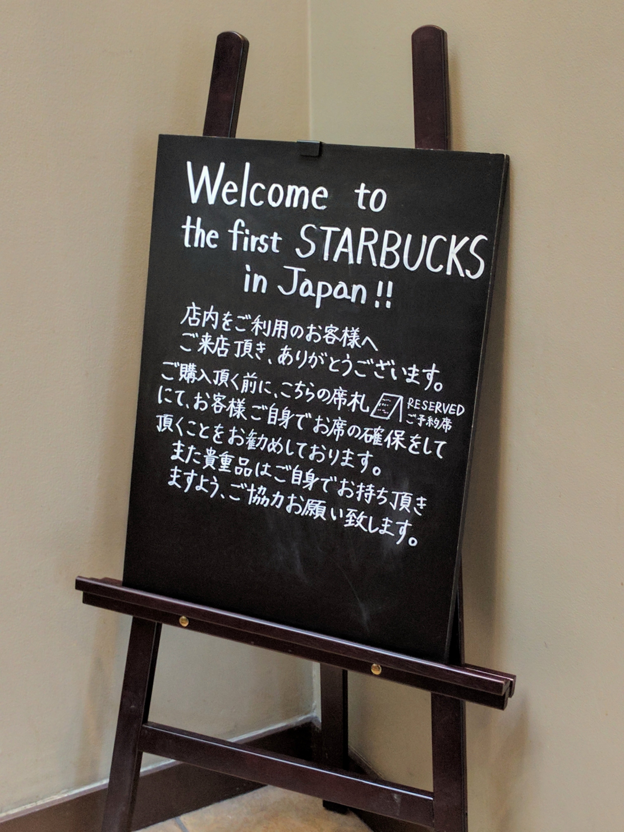 The Ginza. You just don’t see this often.In an effort to find some respite from the cool weather, we stopped in at a Starbucks, which happens to be the first one in Tokyo (just off the main roads of the Ginza)