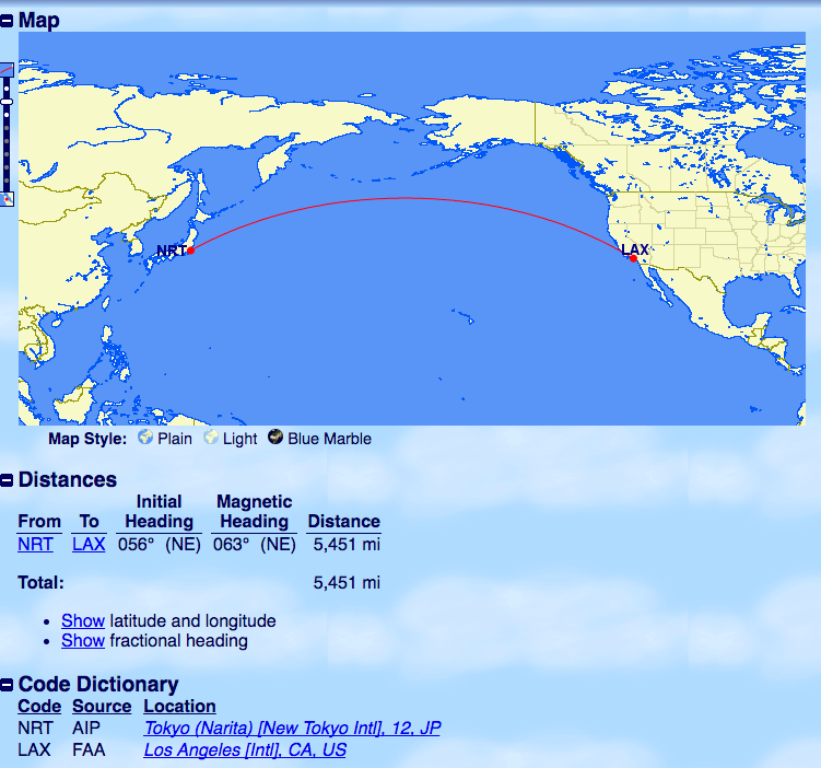 - Narita, Japan to LAX