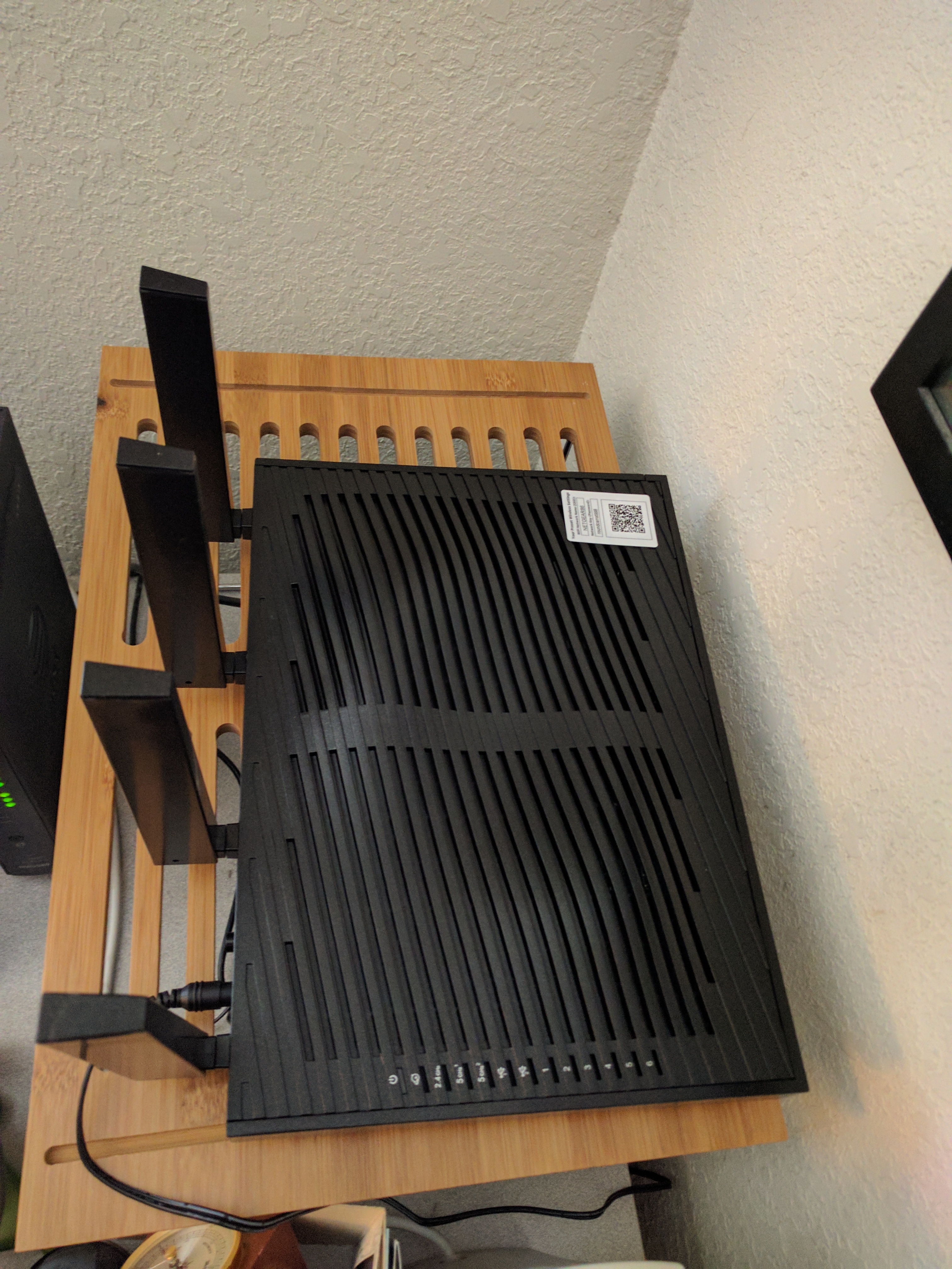Its a beast, weighing 7lbs. And those four external attenaes are all going to be pointing to the other end of the house where WiFi has always been poor. Now if Spectrum’s speed was what they indicated! Latest test showed 117 meg down, 11.5 meg up. The router has a lot of capabilities and not a piece of cheap junk like the ATT gateway.