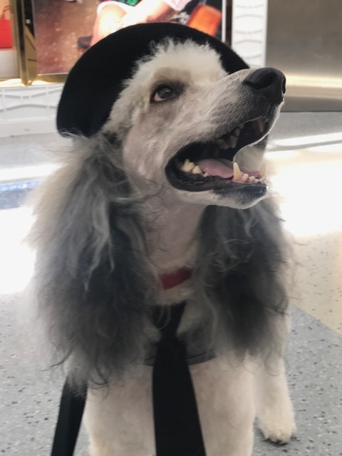 This ferocious guy, along with his pal, a large poodle wearing a beret, were on duty today. I feel safer already.