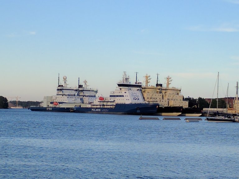 Across from us are some Finnish icebreakers waiting for their return to duty.