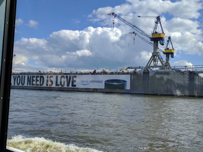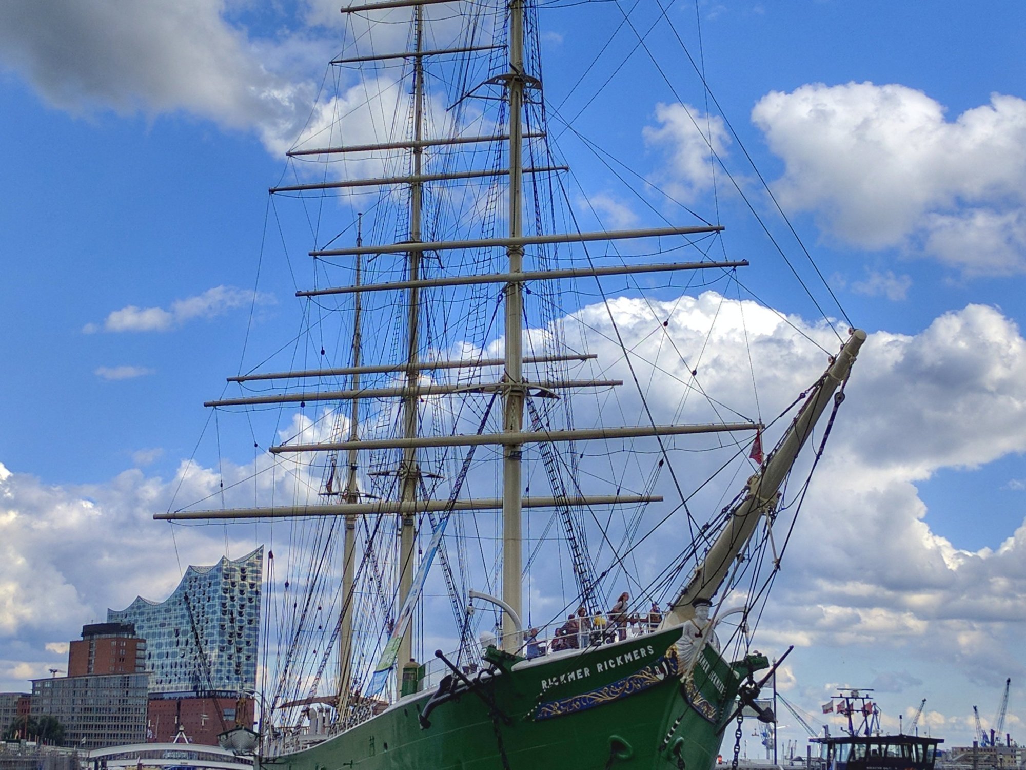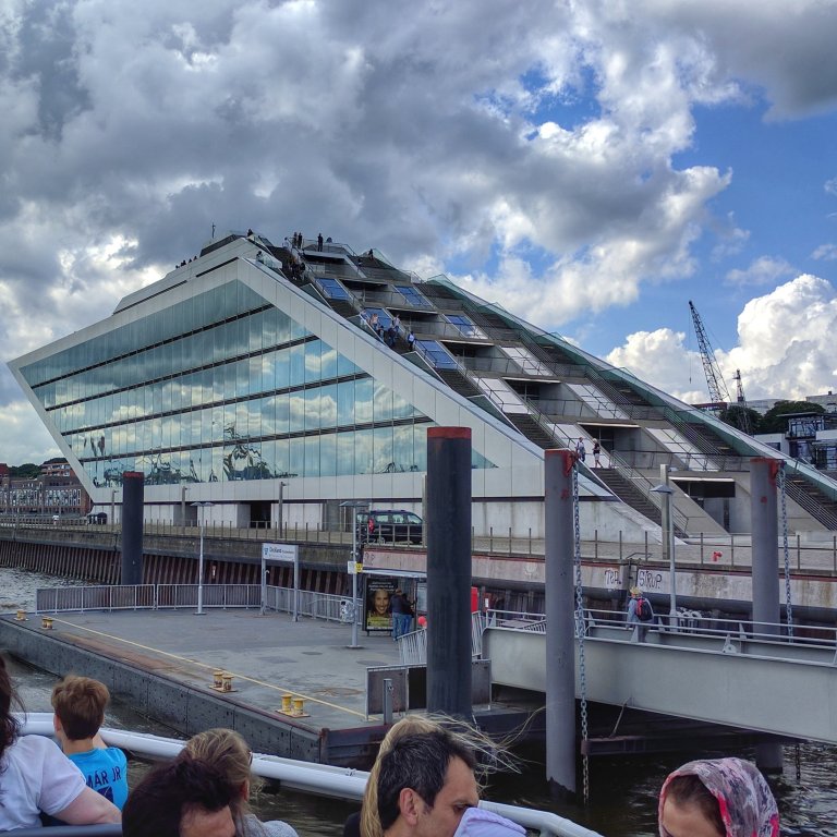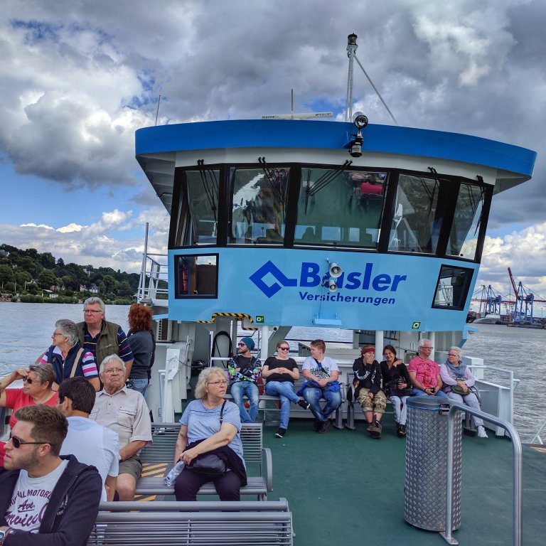 The weather today was very pleasant, partly cloudy, about 66 degrees and a bit windy. We had decided to take a ferry down the Elbe river in the port.