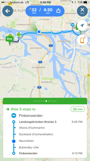 We rode three ferry boats and got off the last one before completely circling back to our starting point as there was an U-Bahn nearby.