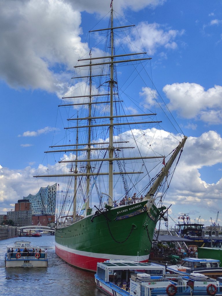 The Rickmer Rickmers windjammer is a three masted vessel permanently moored in the river at Landungsbrucken. It’s undergone several changes in ownership since its original construction in 1896.