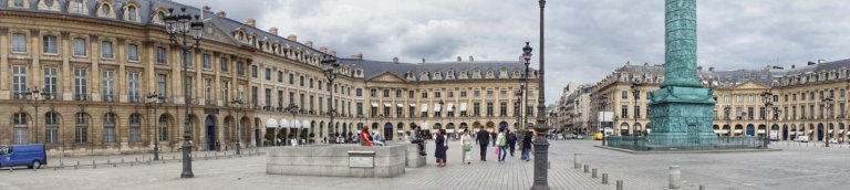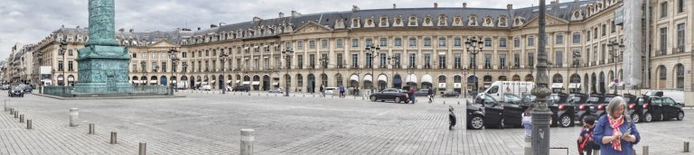 You may notice various shades of lighter/darker on some of the buildings. In all the years we’ve visited, I don’t think we’ve ever seen Place Vendome not having one or more buildings being cleaned, being renovated or the statue being restored. The Ritz Hotel (top photo, on the left side where the awnings are seen) took years to renovate. Place Vendome is home mostly to expensive Jewelers, the Ritz and the French Ministry of justice.