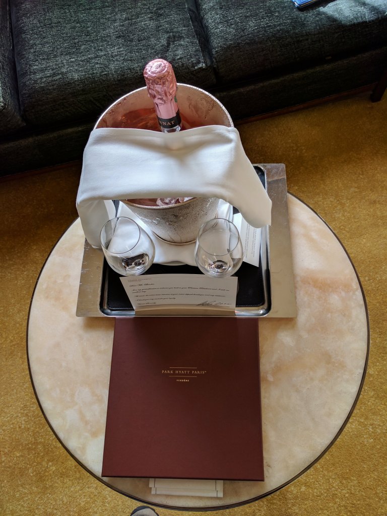 The hotel surprised us with a bottle of champagne awaiting us when we returned to the room. It’s our 38th wedding anniversary!