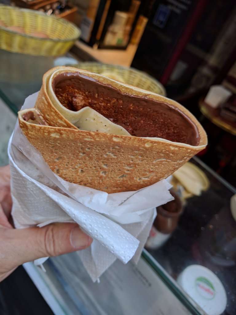 We ate outside at a favorite cafe and then walked a few doors down to indulge in a crepe with bananas and Nutella. Oh, a warm crepe with Nutella!