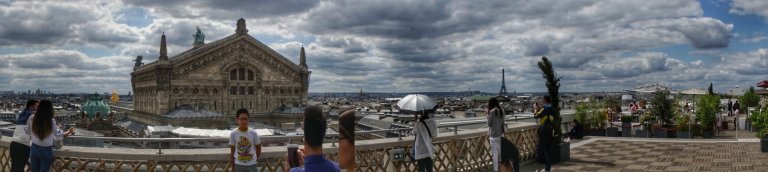 We visited for a bit during petite-déjeuner (breakfast) with our server about his vacation plans in Spain before we headed off to Galleries Lafayette for a little shopping. We do less and less shopping these last few years; doesn’t mean we have everything we want, just that we’re a lot more selective about spending and hauling things back, as well as the relative disadvantageous exchange rate. Stopping at Diptyque on the ground floor for some candles, we went up to the rooftop terrace that has a cafe as well as spectacular views of Paris, for free.
