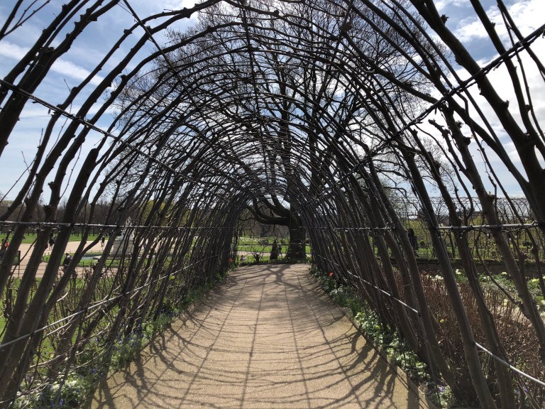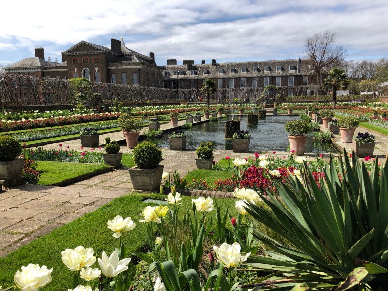 Kensington Gardens are a part of a series of parks in central London and adjoin Hyde Park and St. James Park. The Palace is now home to a number of the Royal family, including Prince Harry and his fiancée, Meghan Markle (marriage about a month from now). Harry wasn’t around to greet everyone, so we visited the sunken gardens which are to the right front side of the Palace.