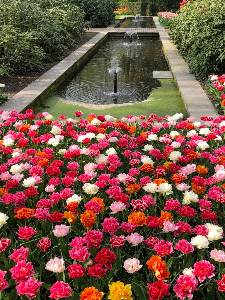 We visited Amsterdam in July 2015, and again in July 2017, but had not ventured out to this area. We spent most of the day at Keukenhof, a showcase for the Dutch tulip industry. The Keukenhof of today is established on the former grounds of the Keukenhof castle (1641). In its day, the grounds of the castle were used to furnish herbs for the castle’s garden; Keukenhof means Kitchen Garden. The castle and its grounds encompass almost 500 acres, but it’s not what you might have thought-it is not acre after acre of row planted tulips. Those exist in nearby fields not part of Keukenhof and they are what you first see when coming into the area, but as impressive as they are, they pale in comparison to the displays at Keukenhof.