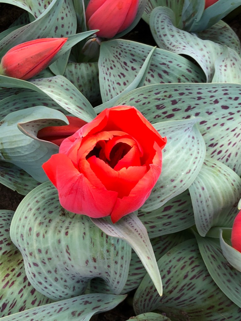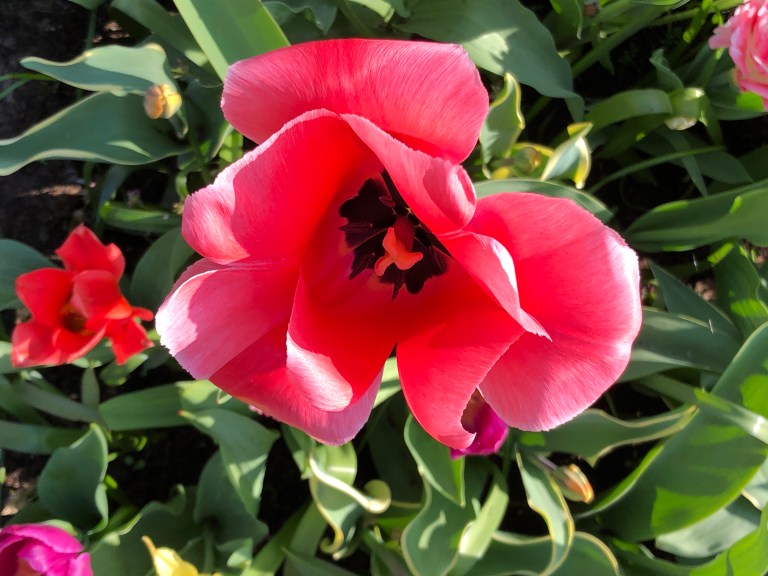 The tulips and other flowers are not planted in big massive fields, but in well designed , but impressive, flower beds, with small signs indicating the grower/distributor for each. There are wooded areas and a large lake (with stepping stones across part of it). You’ve no idea of the number of different varieties that are on display and in some areas, the density of the tulips perfumes the air.