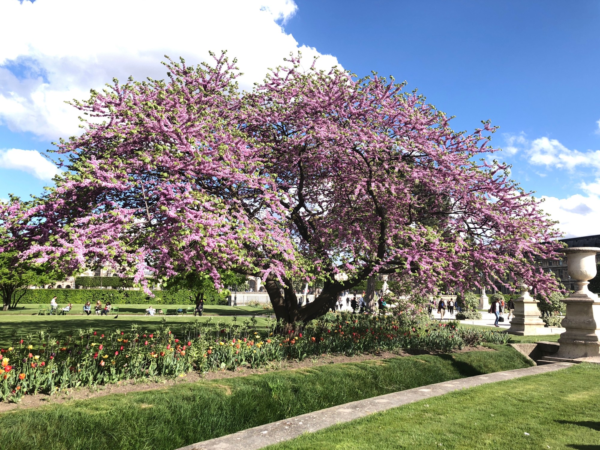 Later, in the peak of summer on a day like this, the Tuileries will be jam packed. For now, we enjoy the relatively uncrowded park and the beauty of spring in Paris