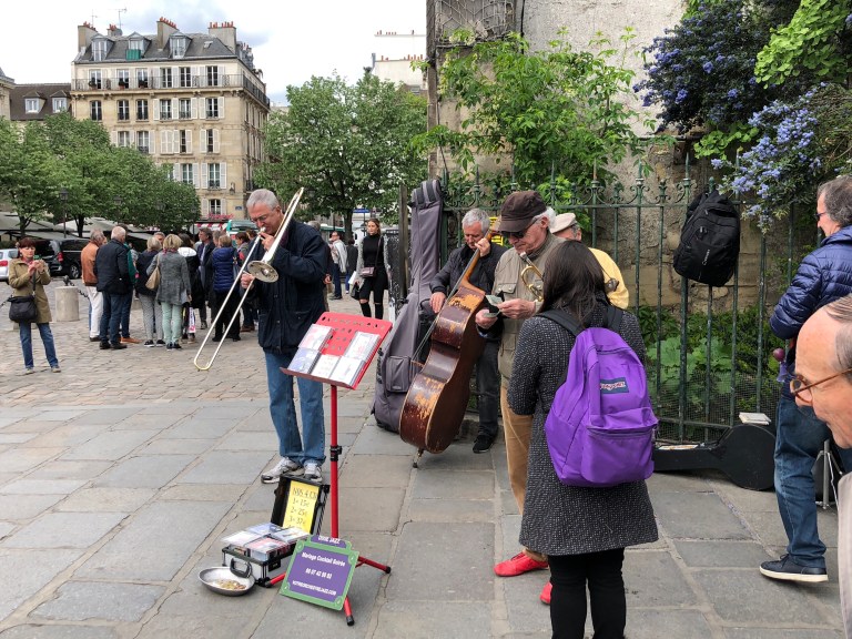 There has been a jazz band located on the corner of the church of Saint-Germain-des-Prés each of the last few times we’ve been here. They play and they hope to sell you their CD.