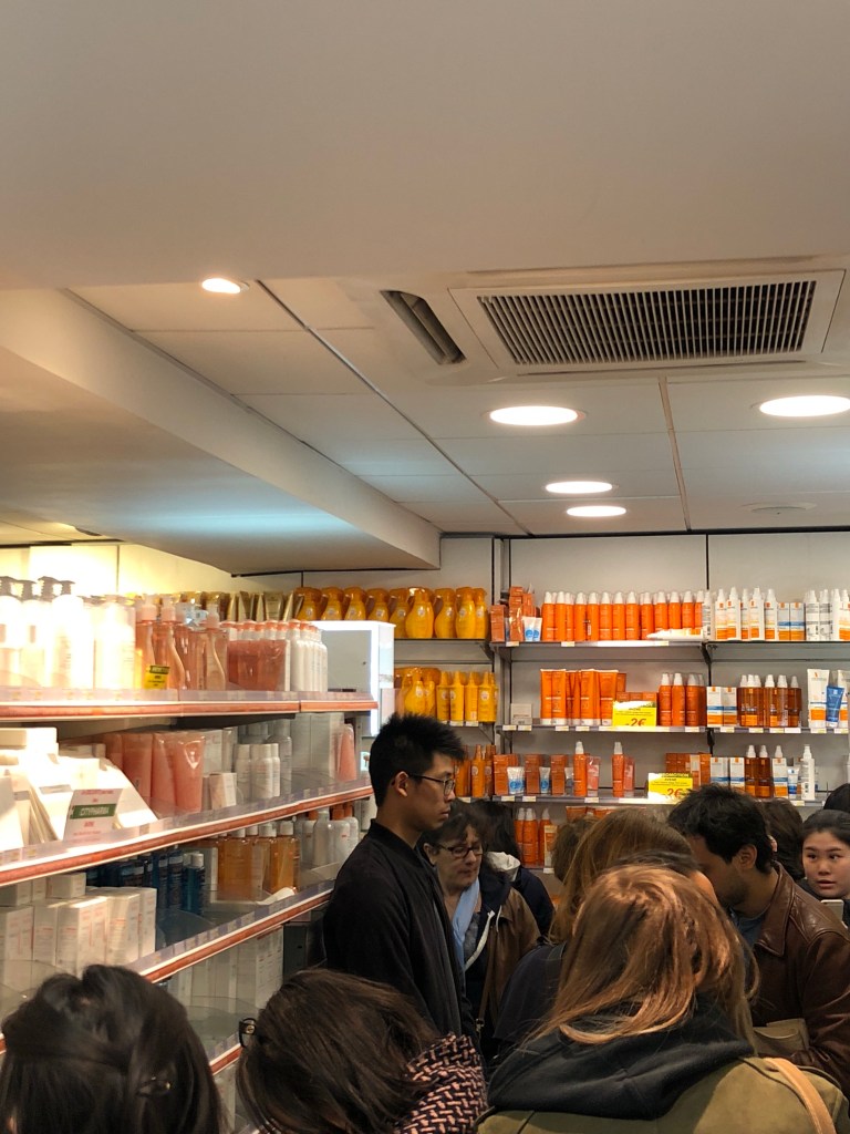 A bit of nearby insanity was taking place at CityPharma. A few blocks away from Magots, it was mobbed by bargain-seeking Parisians and at least two American tourists. Pharmacies in France are different than in the US. While we might commonly say we’re running to the pharmacy to get a few things like toilet paper, some Gatorade and maybe some gum. But you wouldn’t find any of these in a France pharmacy, which are smaller than U.S. chain drug stores and carry just medicines and personal products. There’s no greeting card section or kids’ toys or candy, wine or beer.