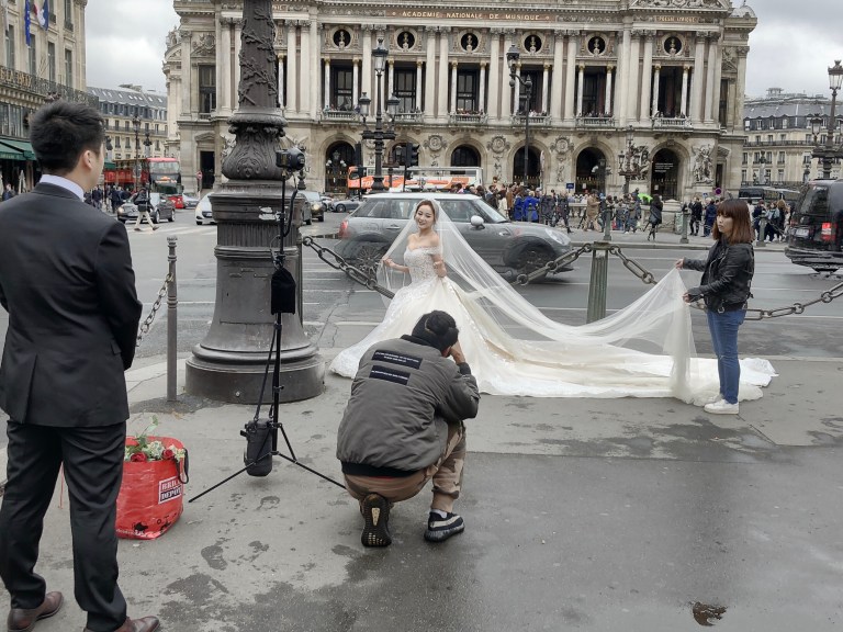Across the street at the Opera Metro entrance (which is on an island in the middle of the street), someone was having wedding pictures taken. Not a particularly good day for it in terms of weather, but the backdrop against the Opera I’m sure was the reason for the location.