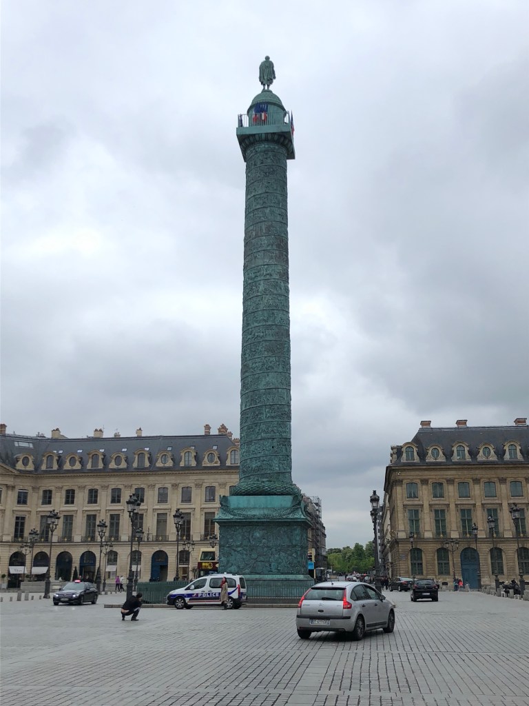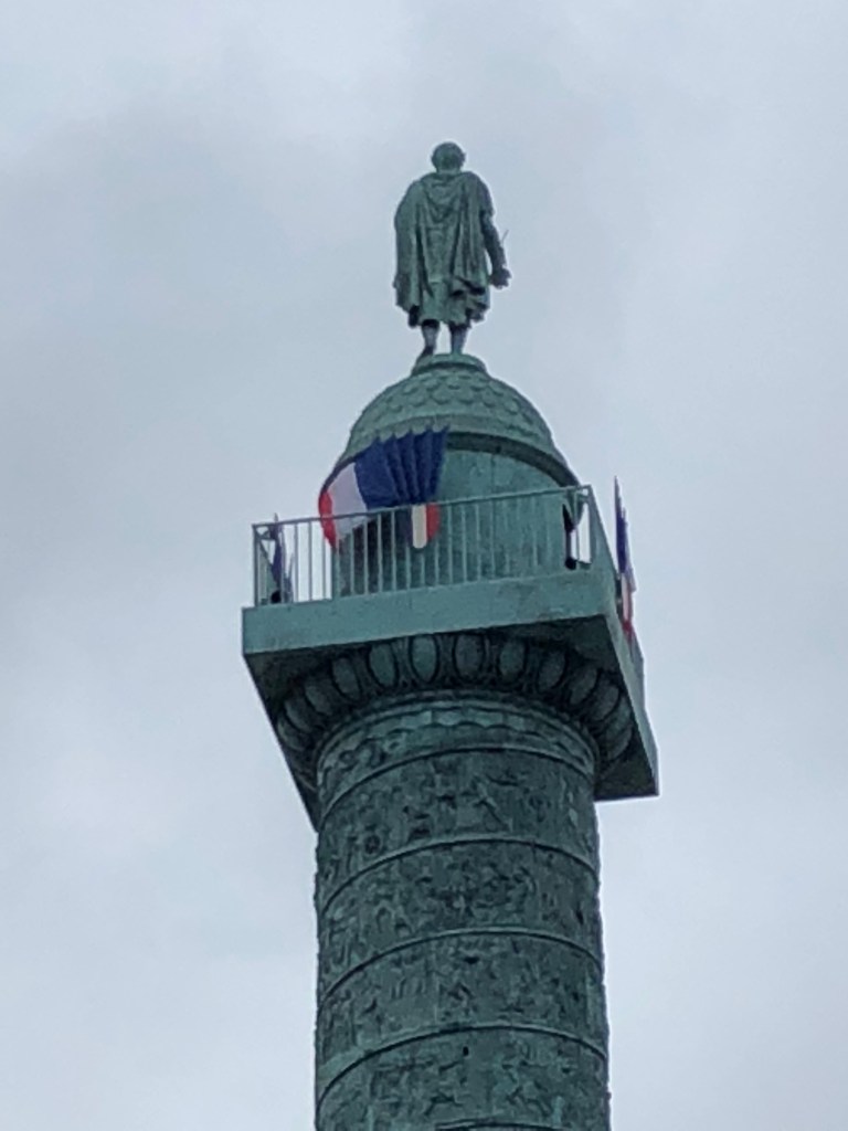 Afterwards we walked back through Place Vendôme. The column with Napoleon’s statue on top had flags we don’t usually see there. Someone got to go up all the 176 tiny little steps inside the column to put the flags outside (inner staircase not open to public).