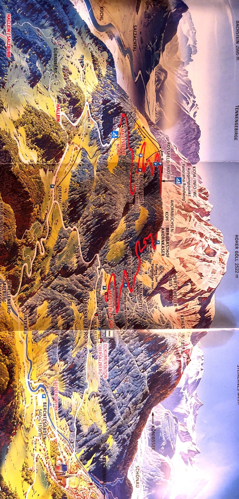 Here’s a scan of the brochure which shows the route we took up and down. Turn the map lengthways; as you look at the map, we drove up the left side and came back down the right side ending in Berchtesgaden.