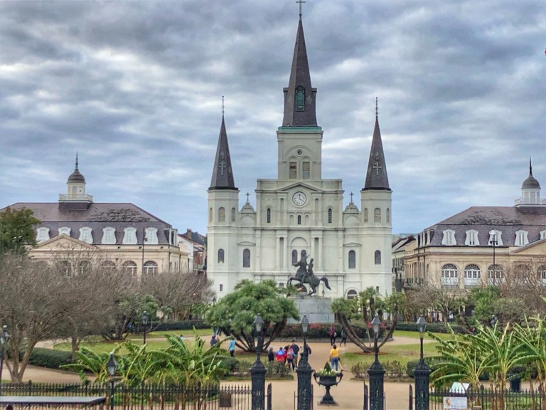 Across the street from Cafe du Monde is Jackson Square and the St Louis Cathedral.