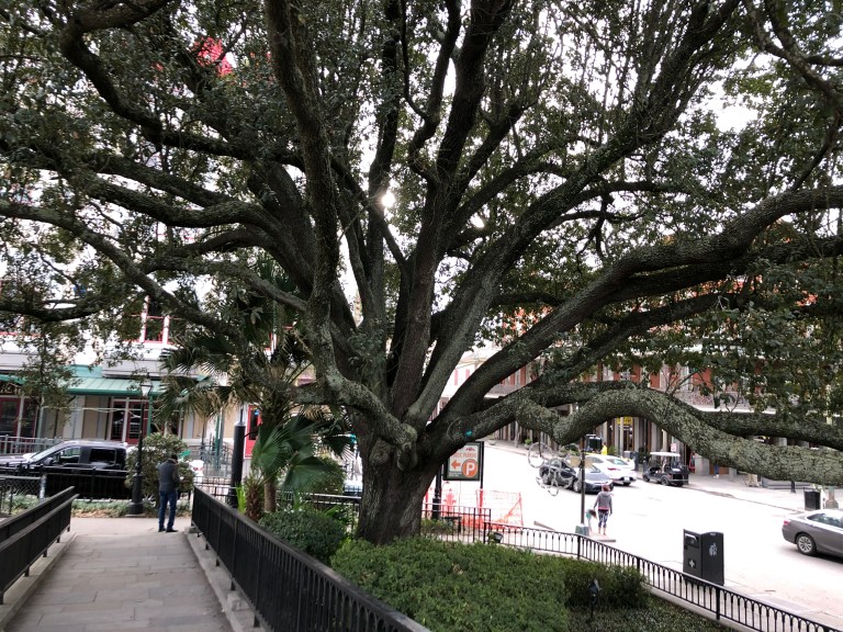 To the left of the cathedral is the Cabildo, once the Spanish colonial city hall and now a state museum. There are some very old trees that remarkably, have endured any number of hurricanes, bordering the park (Plaza d Armas).
