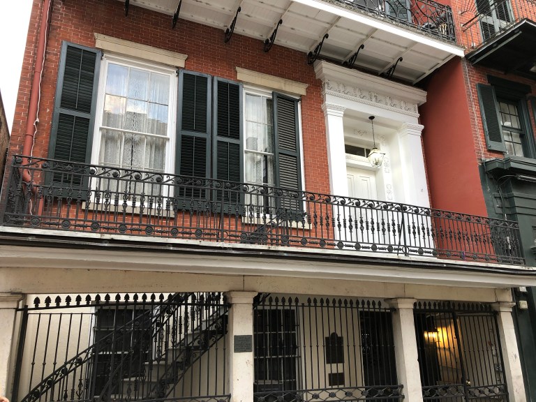 Continuing down St Peters , you can appreciate the unique architecture of the French/Spanish influences, like this residence with a winding wrought iron staircase that leads up to the second story entrance.