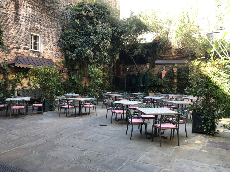 Today we went to brunch at a New Orleans tradition, Brennan’s. On Royal St in the heart of the Quarter, it’s a restaurant we’ve enjoyed from the first visit here together, almost four decades ago. It’s hard to go wrong with Eggs Sardous or Eggs Hussard , turtle soup and Caribbean milk punch. As delicious as those dishes were, we had to follow that with another tradition, bananas Foster (video), All of this does come at a not immodest price and we definitely didn’t spend as much as we could have. But $130 is on the high side for lunch for us.