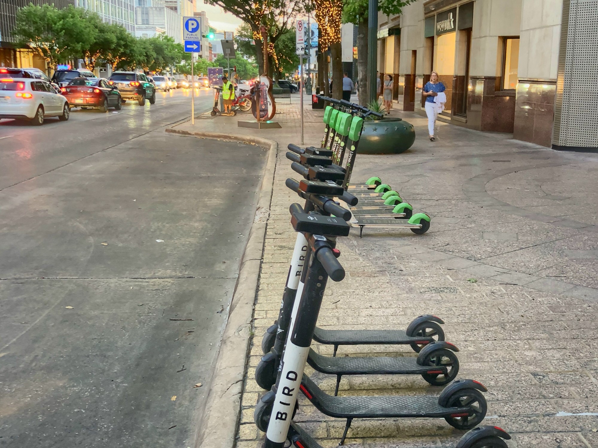In the battle for market share in personal transportation, companies like Uber, Lyft, Lime, Bird and even Ford (through its Spin brand) have saturated parts of Austin with scooters, bikes and motor bikes, on every corner around the UT campus and downtown. In our trips to some major European cities in the last few years, we’ve seen the influx of these types of personal transportation devices, but no where as densely as here.