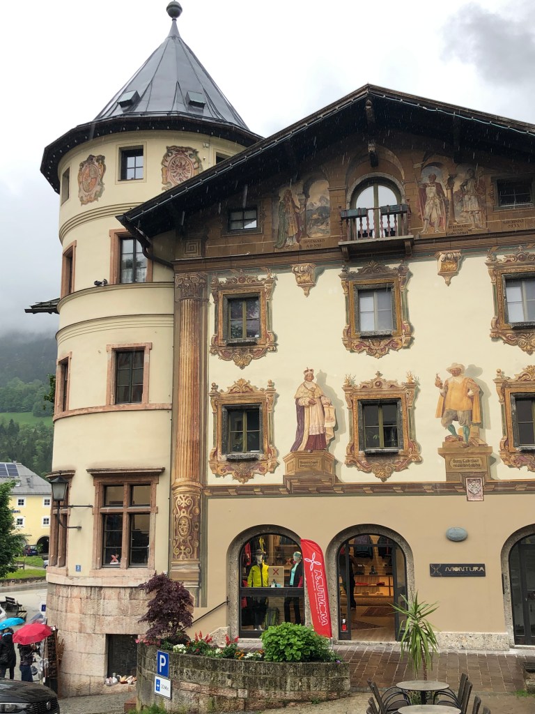 We had a quiet day today, still catching up from jet lag. With the drizzle, we waited until afternoon to go out and decided to walk through the altstadt (old town) section of Berchtesgaden. The first two times we came to Berchtesgaden, it was to stay up on the mountain at the resort (at the time an Intercontinental) and driving along the river road, it wasn’t at all apparent how much more to the city of Berchtesgaden there was. You could see houses, church spires, some hotels and such up higher on the hills, but not appreciate how much you could not see. We spent some time in the Altstadt last visit to the city, but went exploring a bit more today.