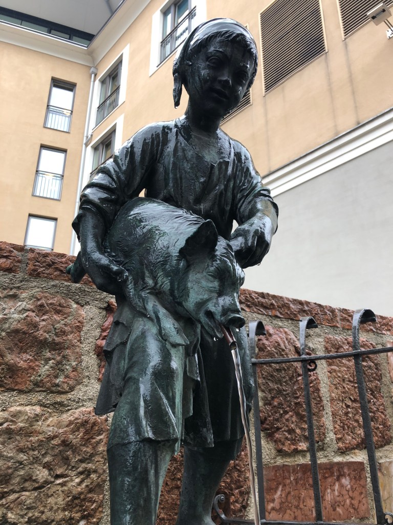 Across the way is a Holzschnitzerei (holz = wood schnitzerei = carver/cutter) with a shop full of intricately carved items, Christmas religious figures (weihnachtskrippen) and large historic figures.