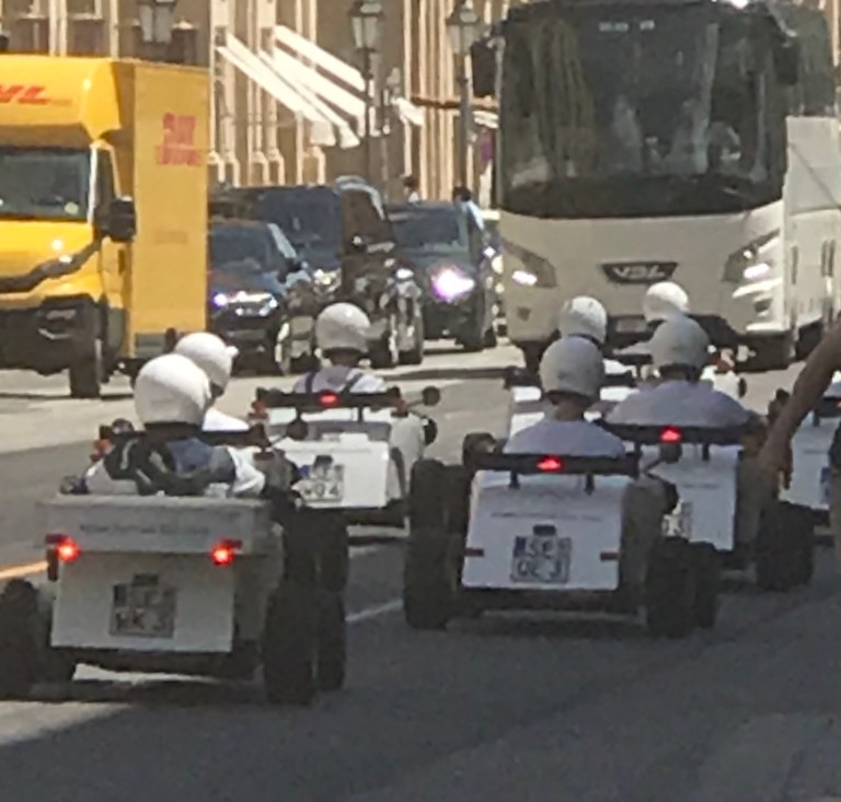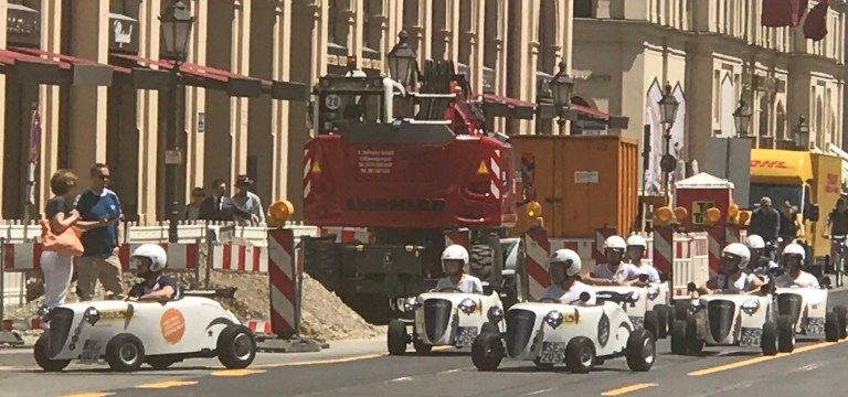 We walked on down to Maximilianstraße, home to a number of high end retailers, like Hermès, Louis Vuitton, Bucherer (jeweler). While waiting at a stop light, we saw this unique tour.